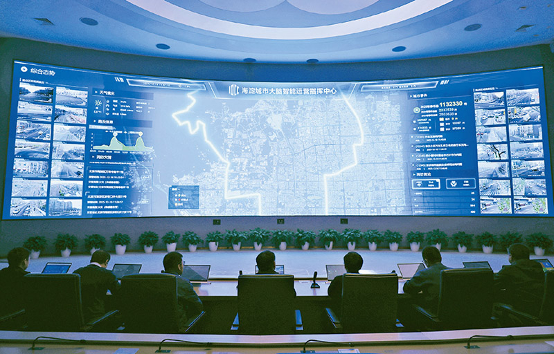 近年来,多地注重以人工智能赋能社会治理,不断提升治理成效。图为2025年12月10日,在北京市海淀城市大脑智能运营指挥中心,工作人员在进行日常城市运行保障工作。